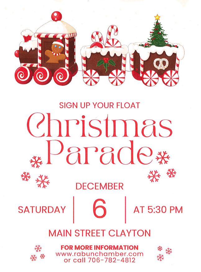 2025 Christmas Parade View/Download Entry Guidelines + Add to Google Calendar + iCal / Outlook export Date Dec 06 2025 Expired! Time 5:30 pm More Info Read More Location Main Street, Clayton Clayton, GA Category Special Event Share this event X